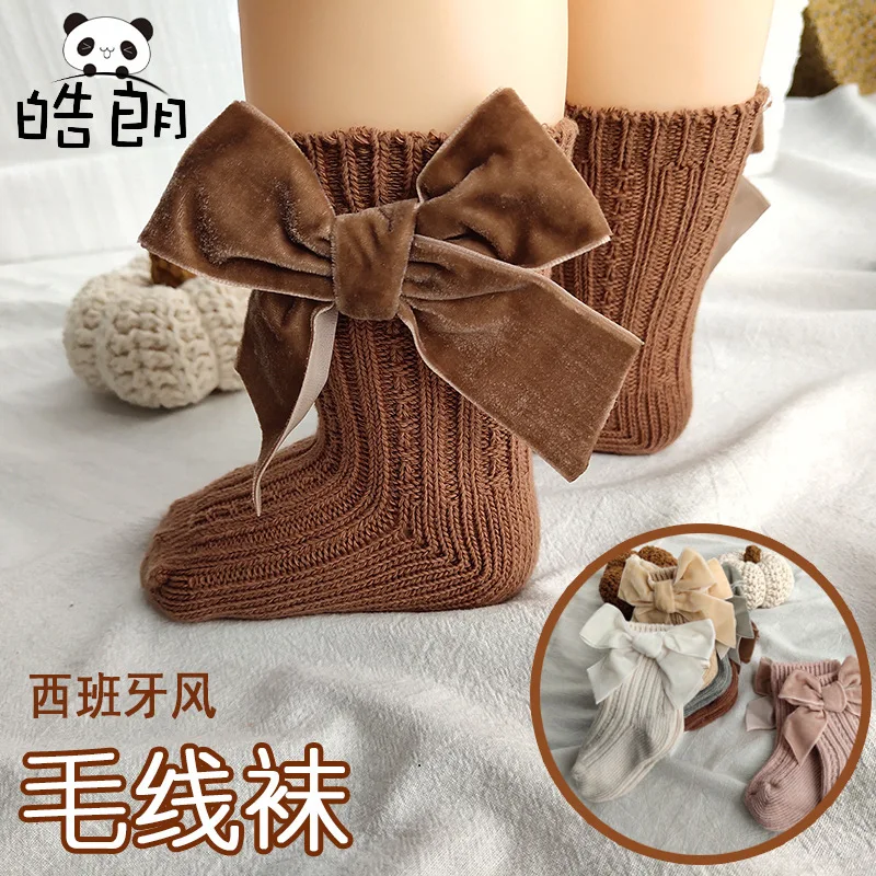 Детские носки хлопковые носки с большим бантом для девочек и мальчи...