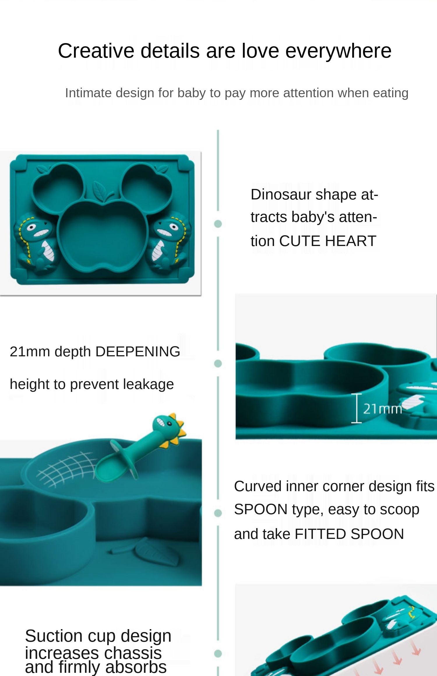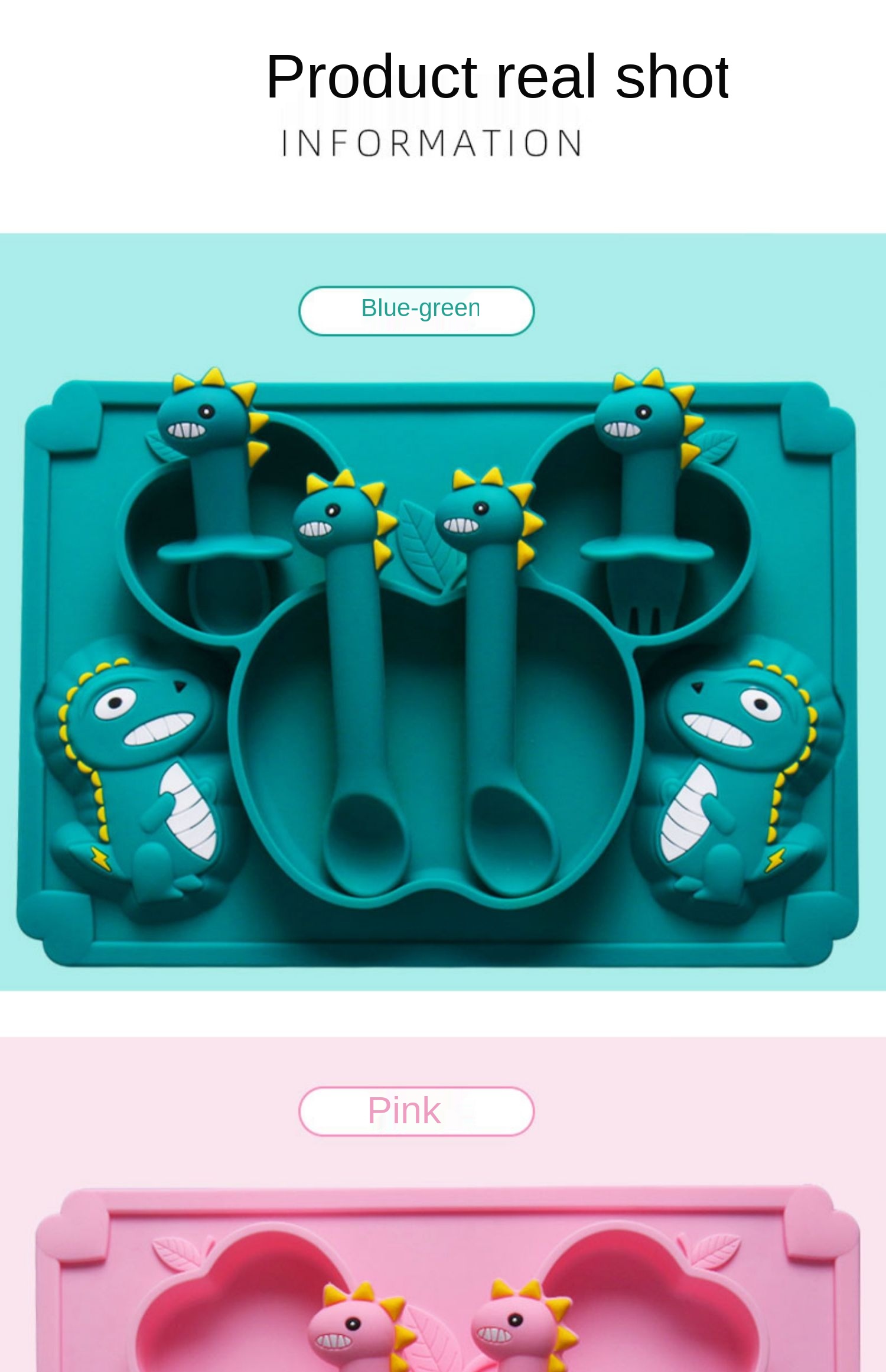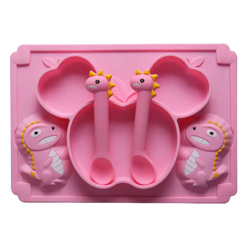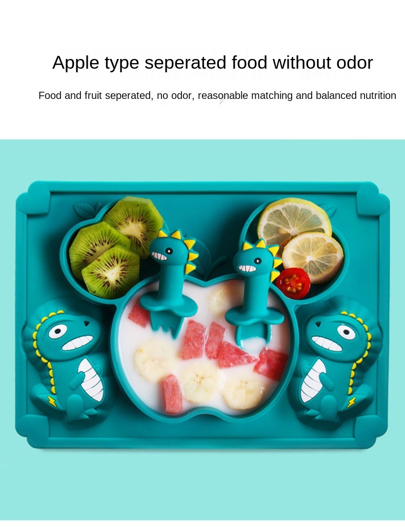 Детская силиконовая тарелка для кормления с мультипликационным дино...