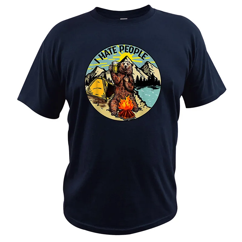 Футболка с медведем и надписью I Hate People, летняя футболка в стиле ретро для любителей пеших прогулок, европейские размеры, 100% хлопок, мягкие крутые Топы