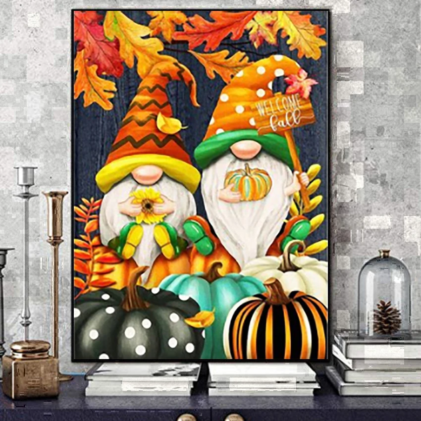 Алмазная 5D Вышивка сделай сам на Хэллоуин, два гоблина и тыква, вышивка крестиком, мозаика, Набор для творчества, домашний декор, подарок