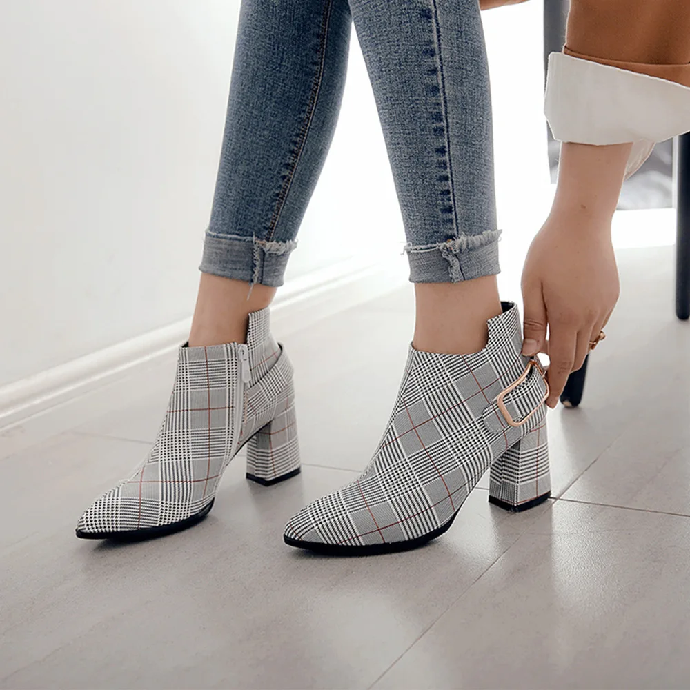 Женские ботинки на высоком каблуке, осенне-зимние ботинки в клетку,...