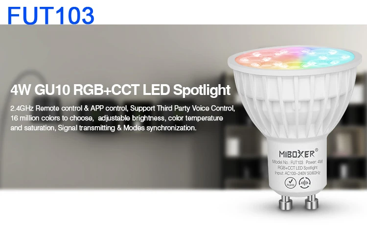 Умный Светодиодный точечный светильник Miboxer GU10, 4 Вт, 6 Вт, RGB + CCTлампа CCT, 110 В, 220 В, потолочный светильник FUT103FUT106FUT107, 2,4G, дистанционное управление через приложение