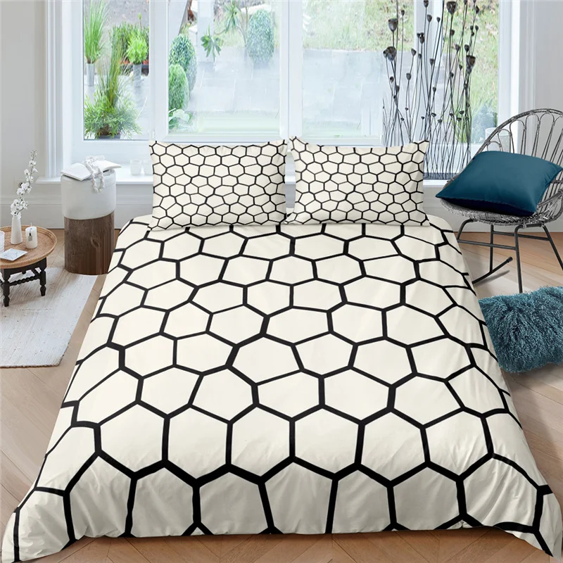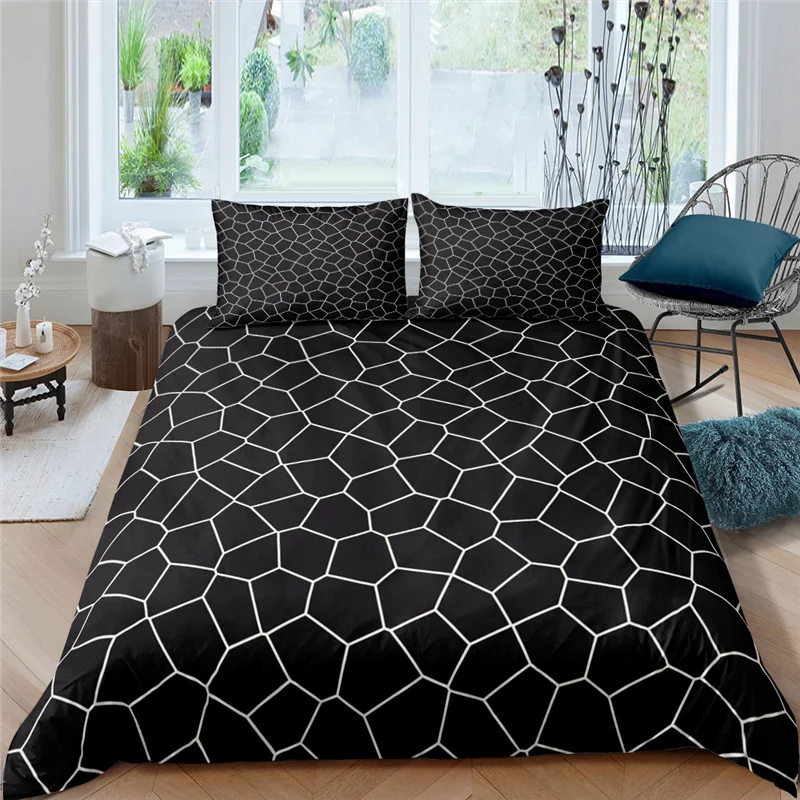 Комплект постельного белья для детей-подростков, черно-белый клетча...
