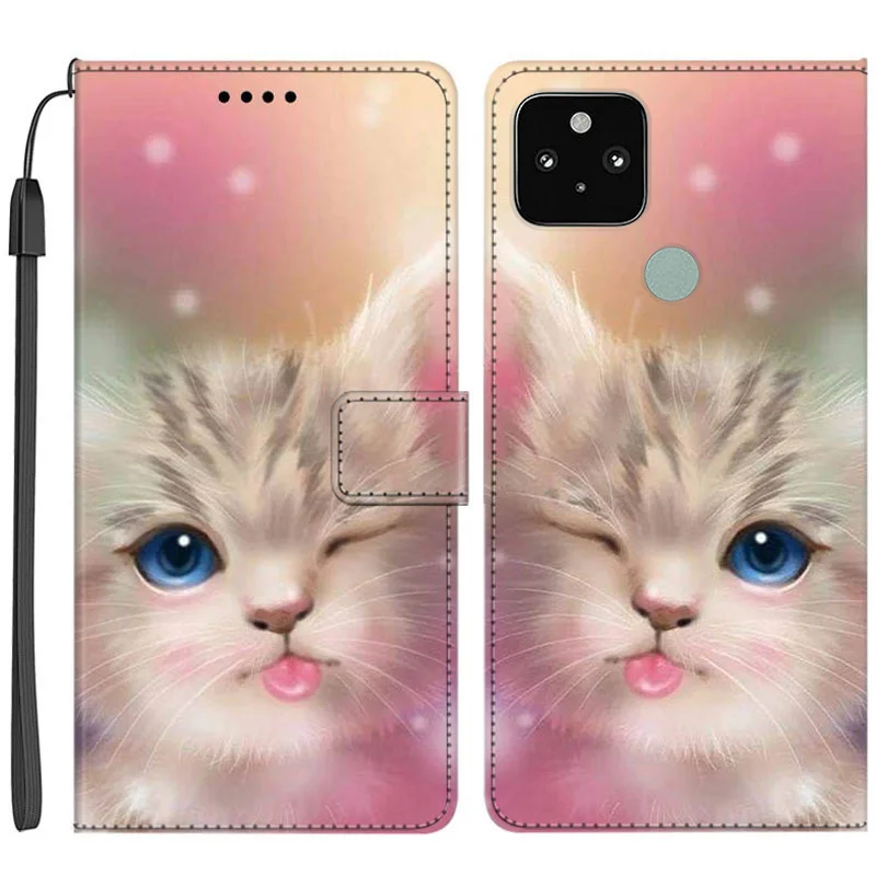 Кожаный чехол-книжка для Google Pixel 5 XL 4A 5G 2 4 3 XL 3A, с рисунком Подставка-кошелек для телефона, чехол-книжка, держатель для карт, сумка Pixel5 Pixel4A