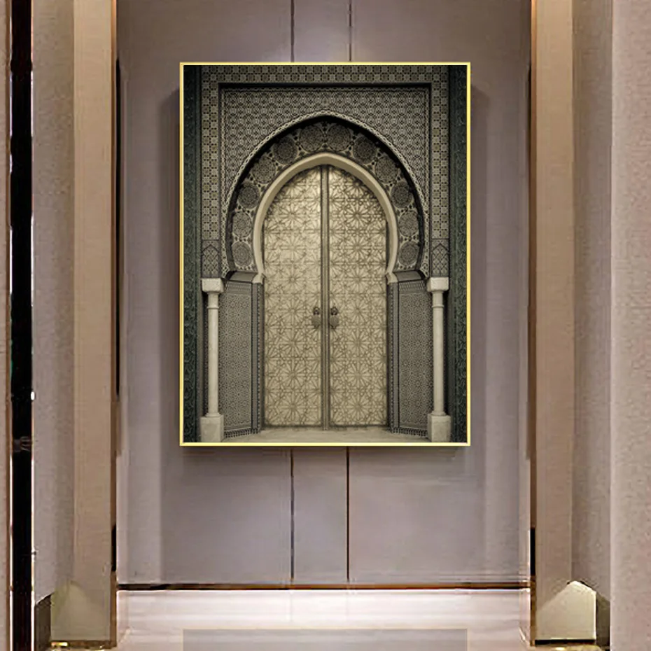Исламская мусульманская архитектура, марокканская дверь, холст, жив...