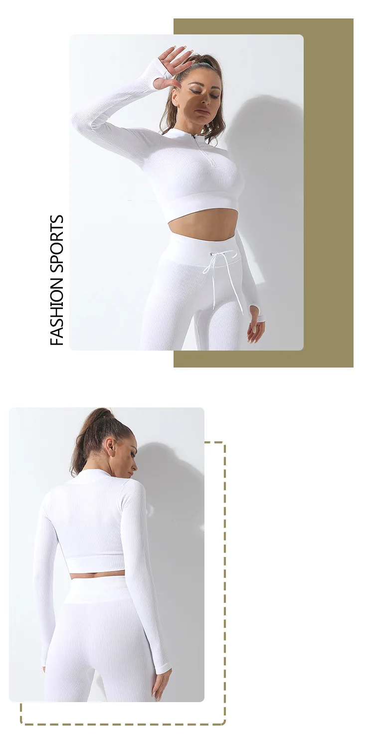 Женский бесшовный комплект для йоги Vital, спортивные костюмы, одежда для тренировок в тренажерном зале, короткий топ с длинным рукавом и бесшовные леггинсы с высокой талией