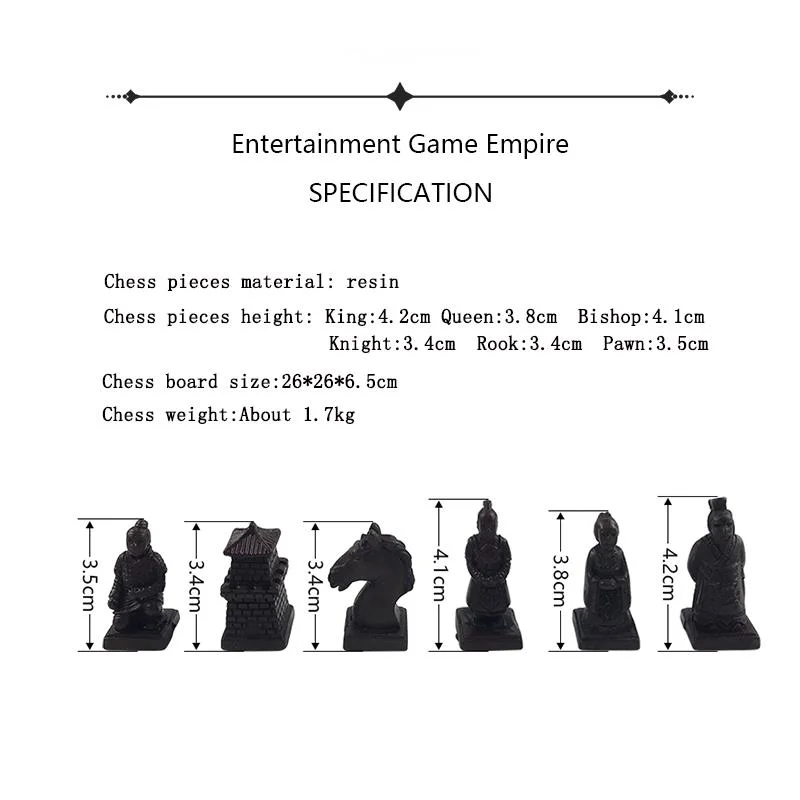 Набор шахматных ретро для настольных игр, резиновые шахматы, терракотовые воины, реалистичные кусочки, доска высокой плотности, паста, 26*26*6,5 см, подарок