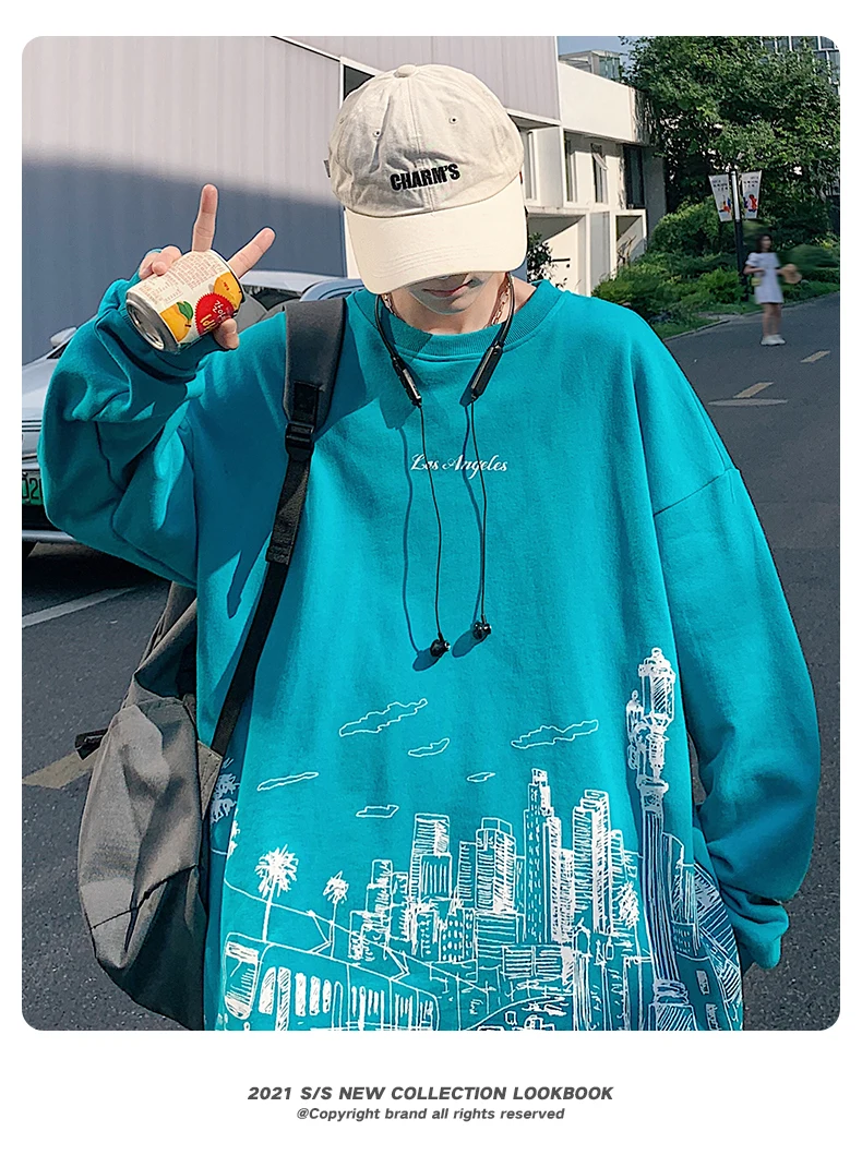 Мужской повседневный свитшот в стиле хип-хоп, свободного покроя