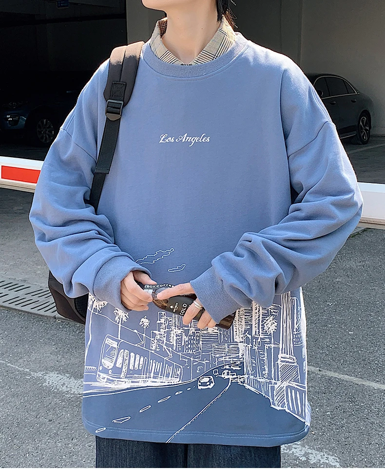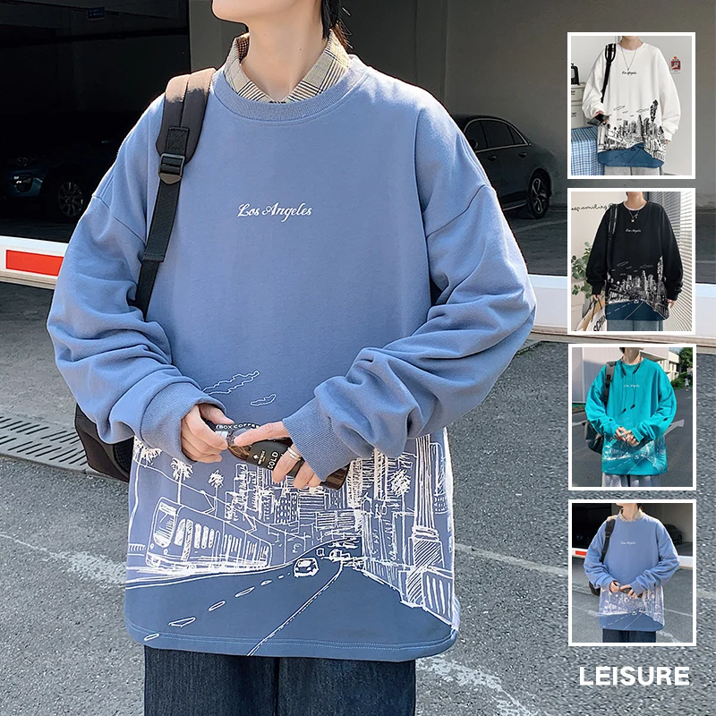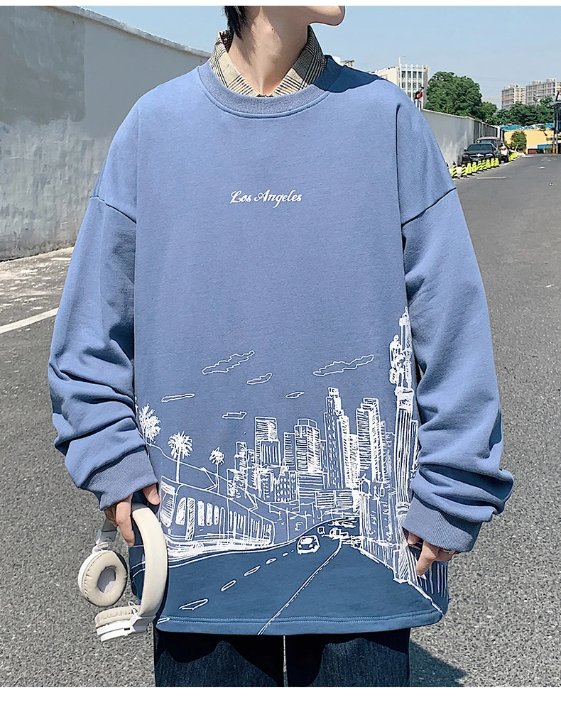 Модный свитер с круглым вырезом, Мужская Уличная одежда в стиле пэч...