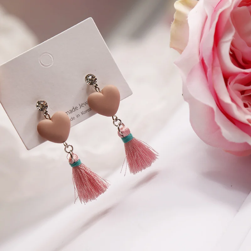 Розовая коллекция, красивая милая девочка, маленькое сказочное сердце, Геометрическая Милая женская модная Красивая серьга, леди, студенты, сестры