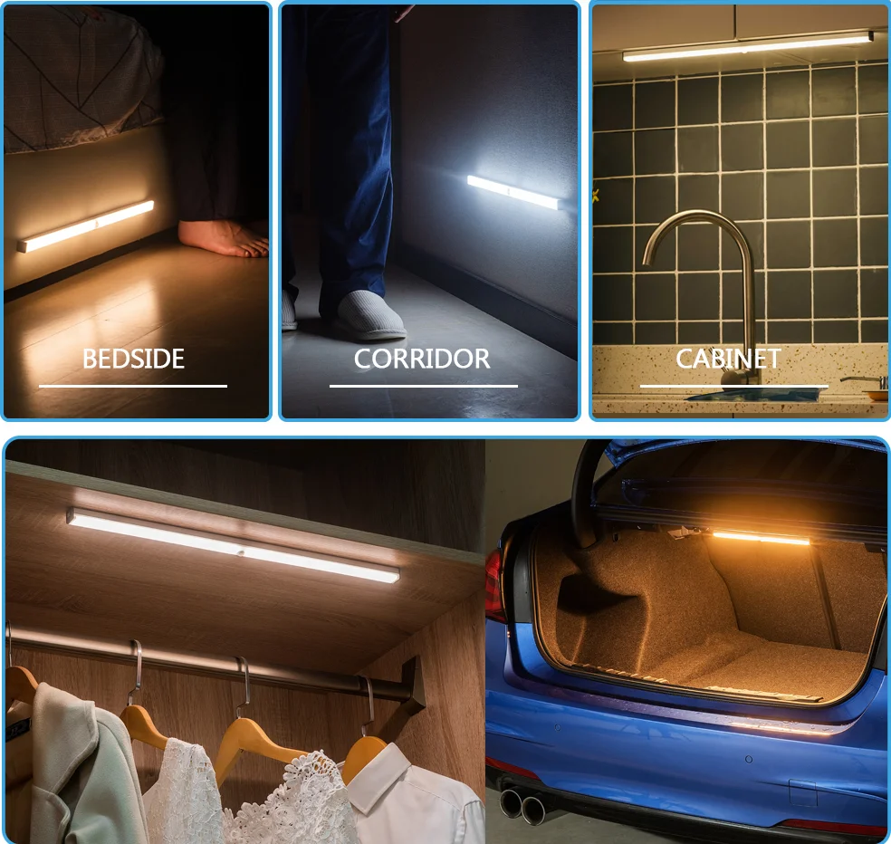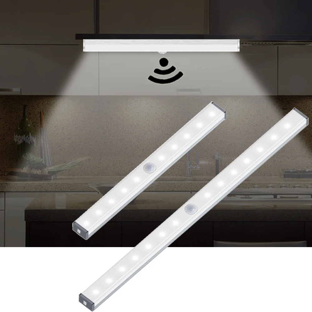 Светильник под шкафом, Длинная лента, 102030 см, магнитный светильник для шкафа, датчик движения, светильник для дома, кухни, гардероба, светодиодный светильник