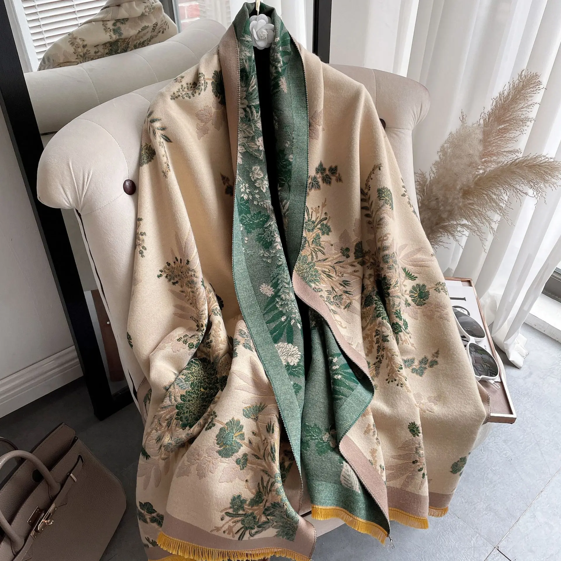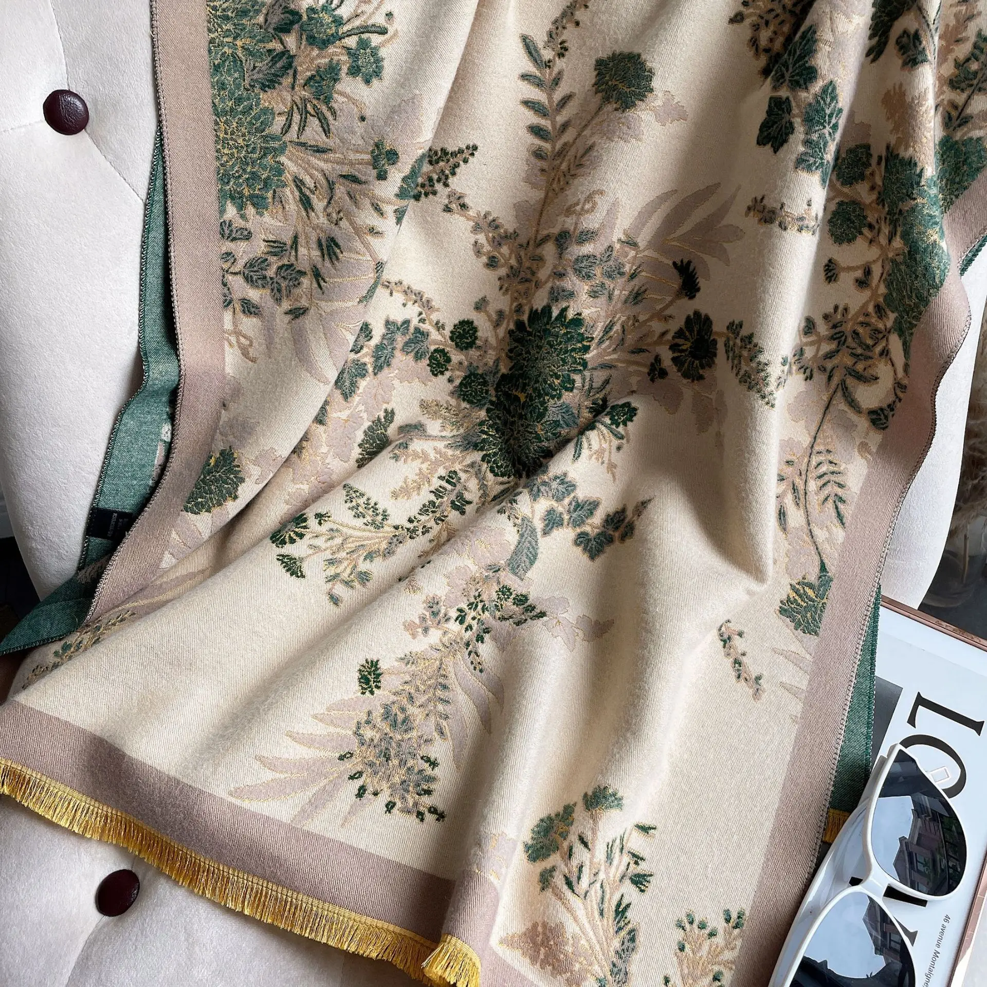 2021 элегантный кашемировый шарф с цветочным рисунком для женщин теплая зимняя шаль из пашмины женский шарф одеяло шарфы палантины