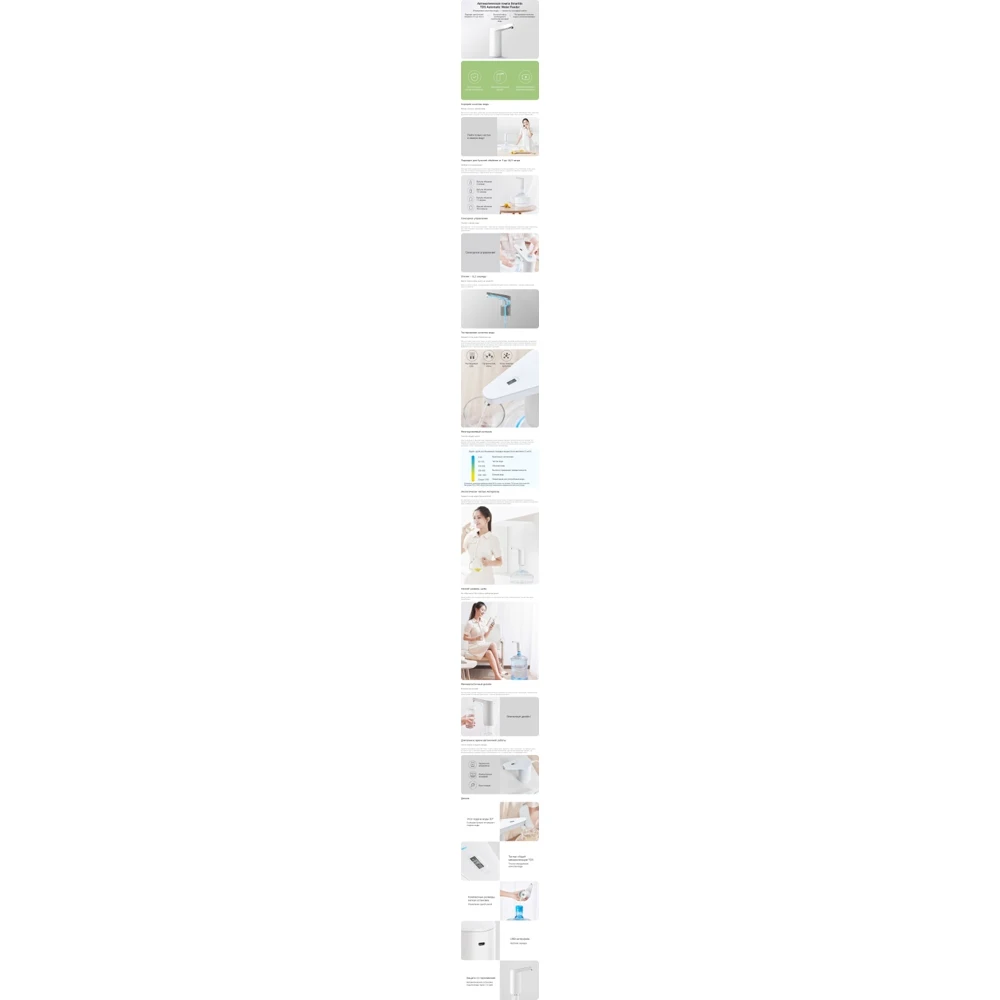 Встроенный тестер TDS для определения качества воды. Сенсорное управление. OLED-дисплей. Питание от аккумулятора, 140 л воды от одной подзарядки (microUSB). Для бутылей от 5 до 18,9 л. Автовыключение через 1.5 мин. Угол подачи воды 30°. Экологичные материалы. Техническое описание Тип управления: сенсорное Встроенный тестер TDS для определения качества воды в режиме реального времени OLED-дисплей Уровень шума при работе: ~50 дБ Количество воды, которое устройство может накачать с одного заряда: ~140 л Подзарядка аккумулятора: через Micro USB Длительность подзарядки: ~3 часов Объем бутылей: от 5 до 18,9 литра Подходящая температура воды: 5-45°C Автоматическое отключение через 1.5 мин.