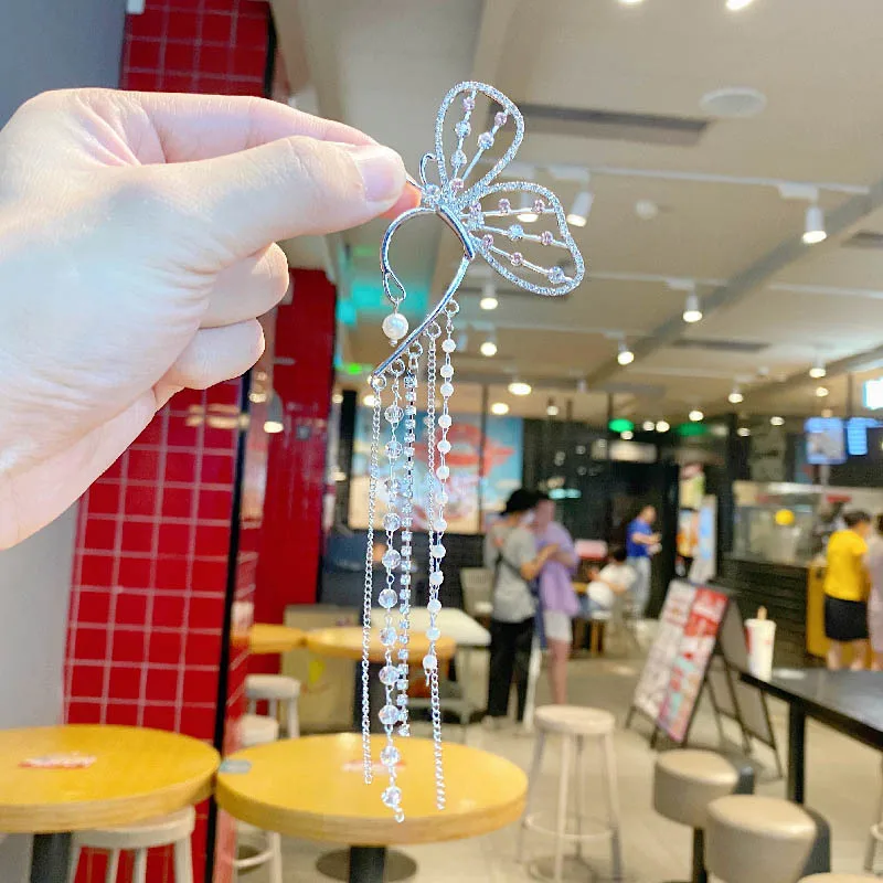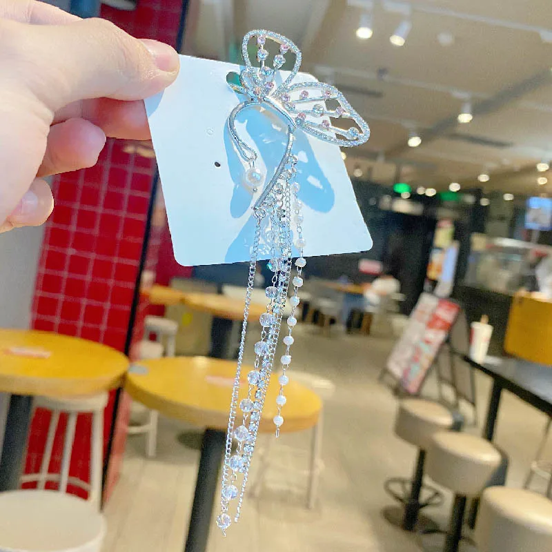 1 шт. модные длинные серьги-клипсы с бабочкой с кисточкой для женщи...