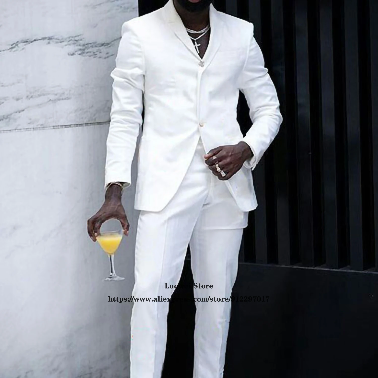 Мужские костюмы, Модный повседневный белый комплект из 2 предметов, Классический официальный деловой Блейзер, свадебный смокинг для жениха, мужской пиджак + брюки