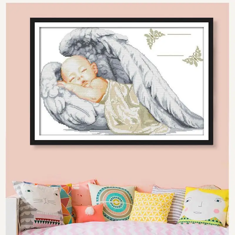 Набор для вышивки сделай сам, наборы для вышивки крестиком 11CT, 100% Точная печать, DMC холст, узоры, Счетный ангел, детский Декор стен