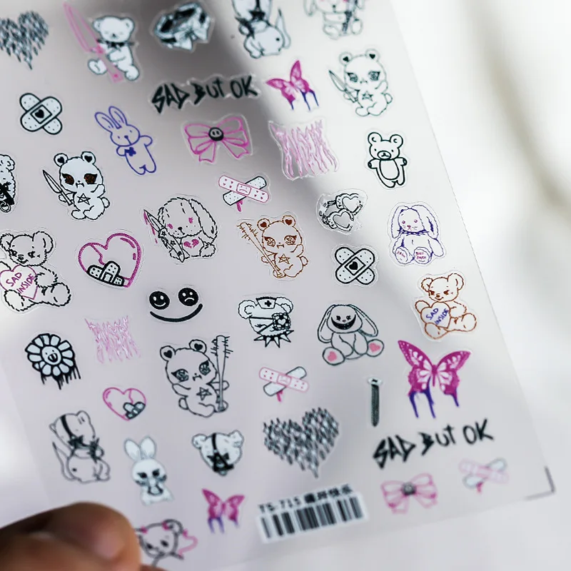 Слайдеры для ногтей в черном стиле на Хэллоуин, наклейка с медведем...