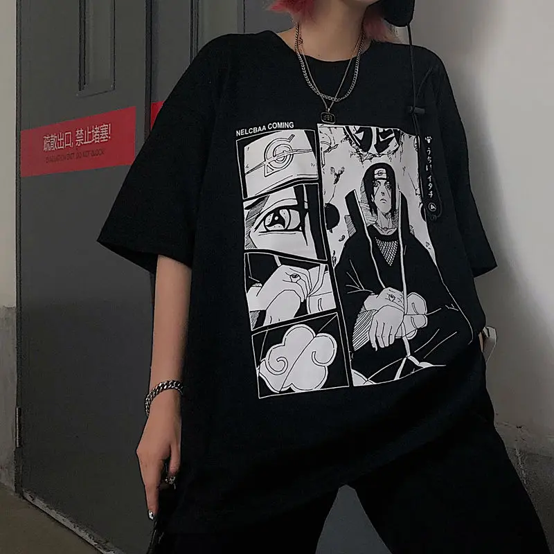 Футболка мужская с японским аниме, смешная мультяшная футболка Итачи, классная модная уличная одежда унисекс в стиле акацу, женская футболка в стиле хип-хоп