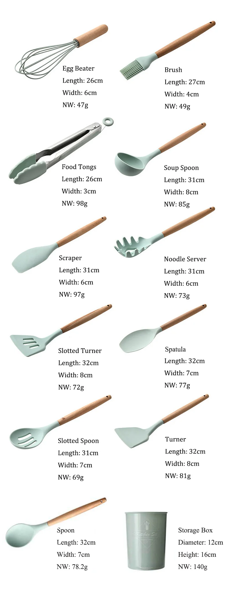 Набор силиконовых кухонных принадлежностей, кухонная посуда с ящико...