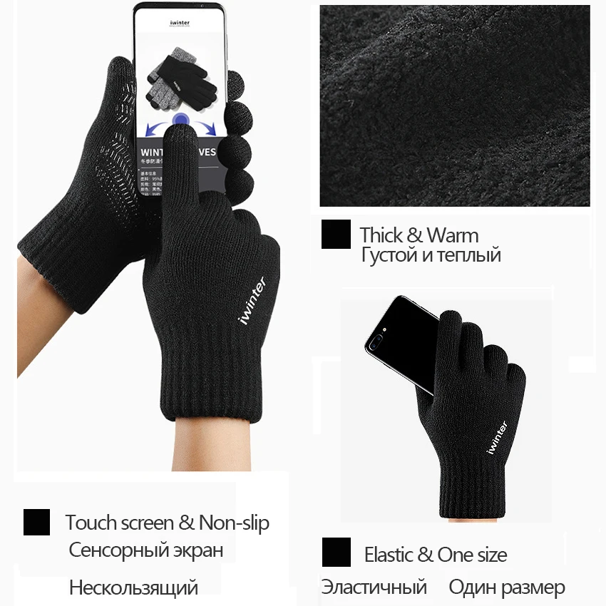 Перчатки мужские зимние, для сенсорного экрана, ветрозащитные, Неск...