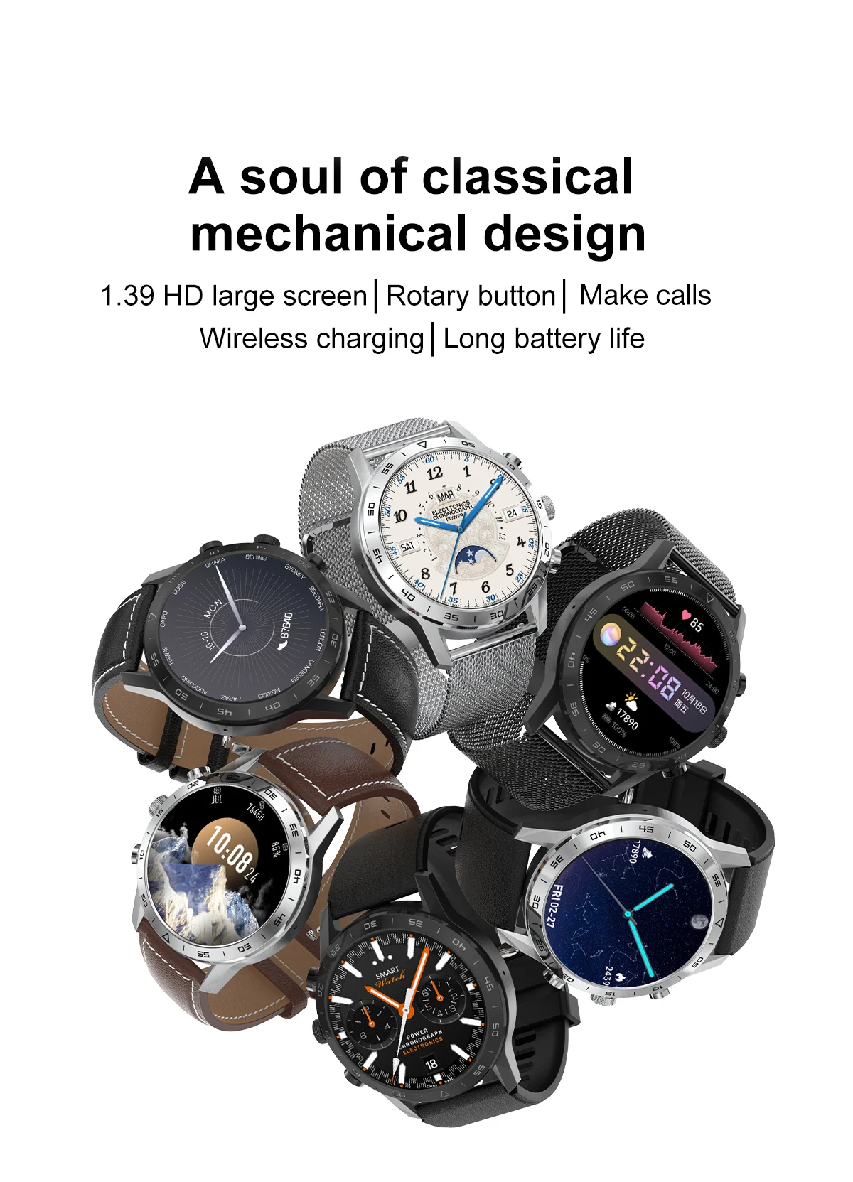 Большой экран 1,39 HD | Поворотная Кнопка | Звонки |Беспроводная зарядка | Длительный срок службы батареи