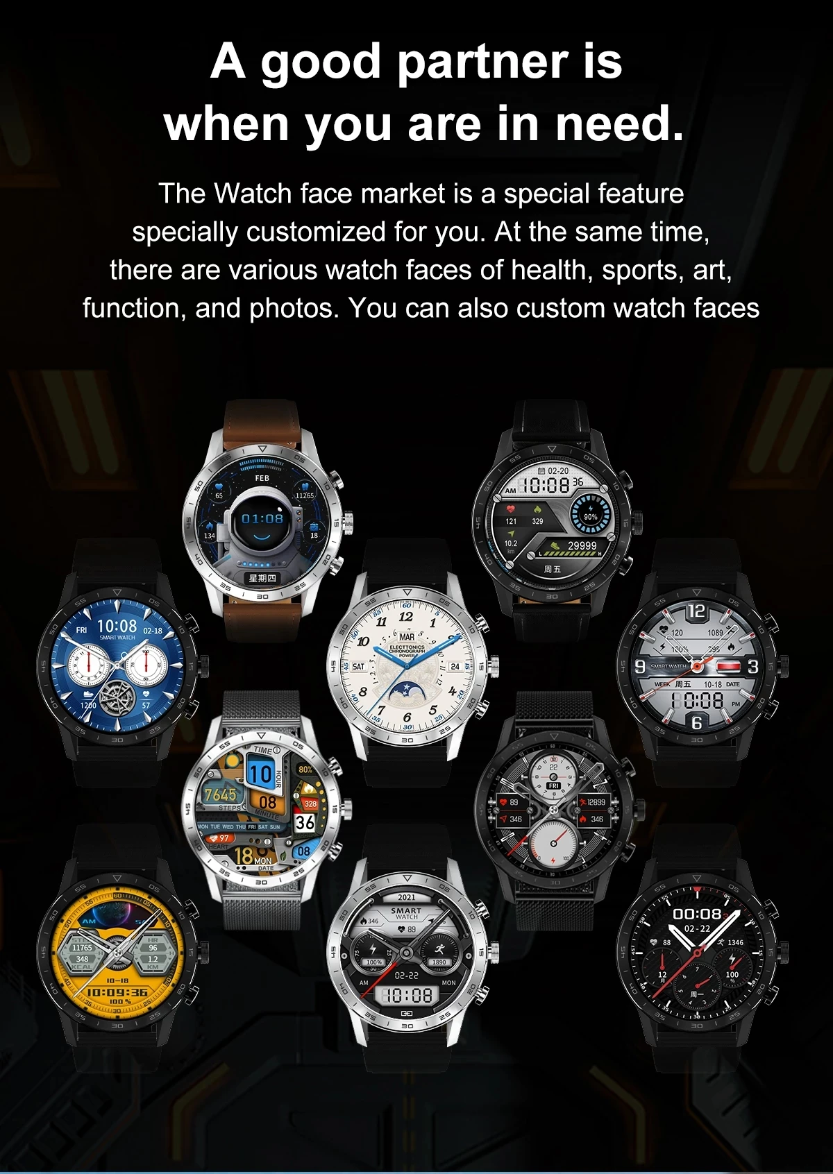 Рынок циферблатов-это особая особенность, специально настроенная для вас. В то же время есть различные циферблаты для часов: здоровье, спорт, искусство, функция и фотографии. Вы также можете персонализированные часы циферблатов.