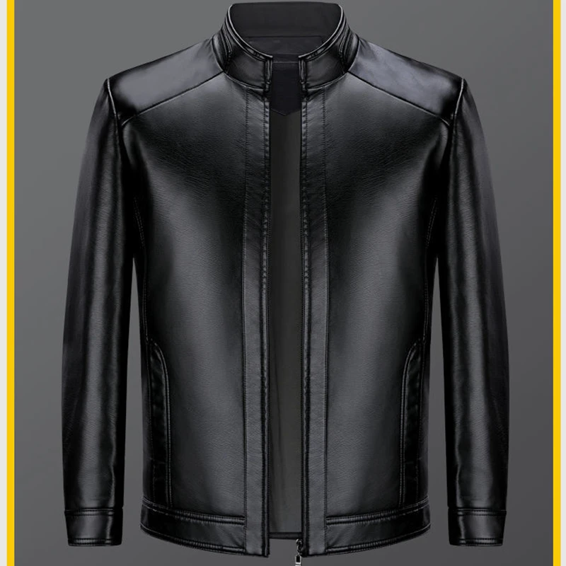 Мужская теплая кожаная куртка, черная куртка с воротником-стойкой, ...