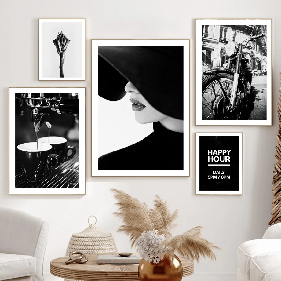 Настенная живопись в скандинавском стиле, черно-белая винтажная абс...