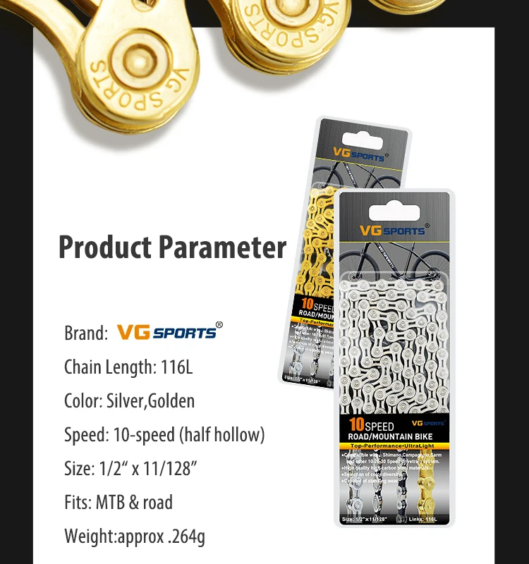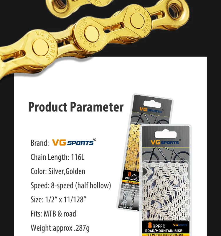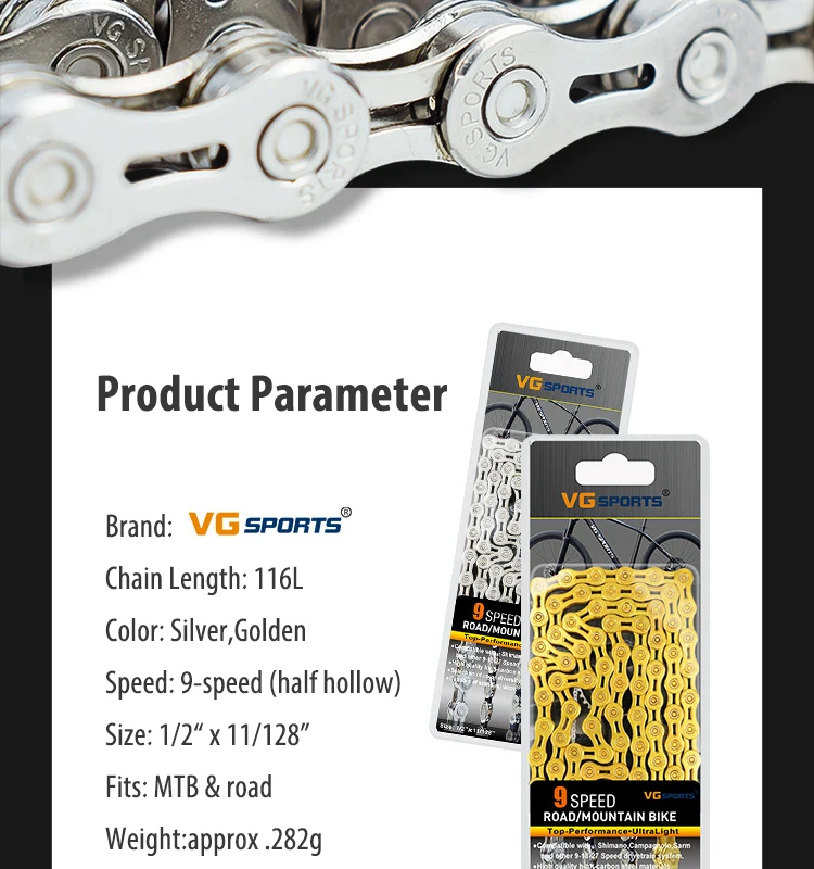 Спортивный горный и шоссейный велосипед VG, 8, 9, 10, 11 скоростей, велосипедная цепь 116 звеньев, 12*11дюйма, половинчатая, из высокопрочной стали
