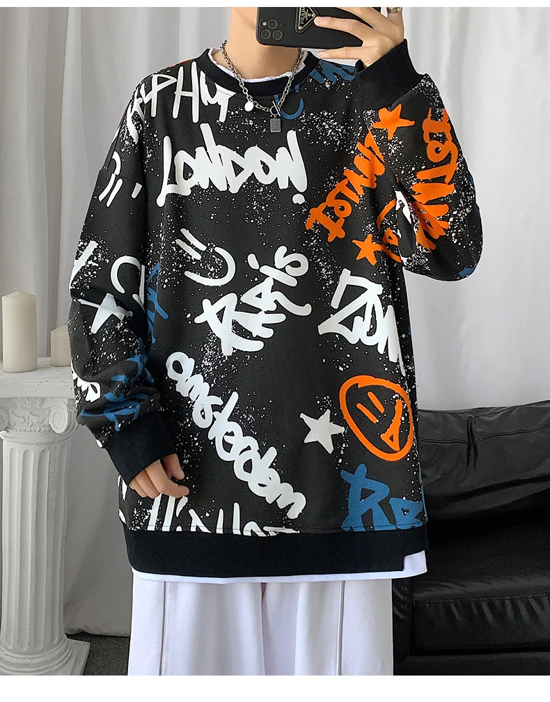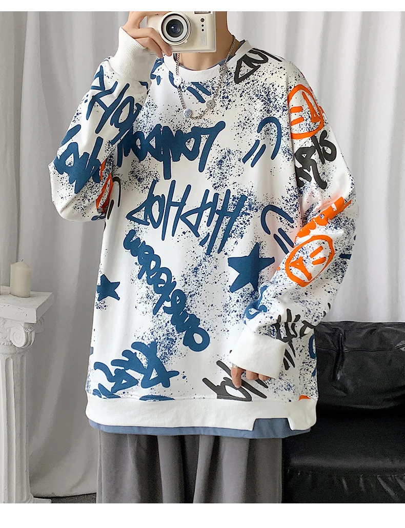 Модный свитер с круглым вырезом, Мужская Уличная одежда в стиле пэч...