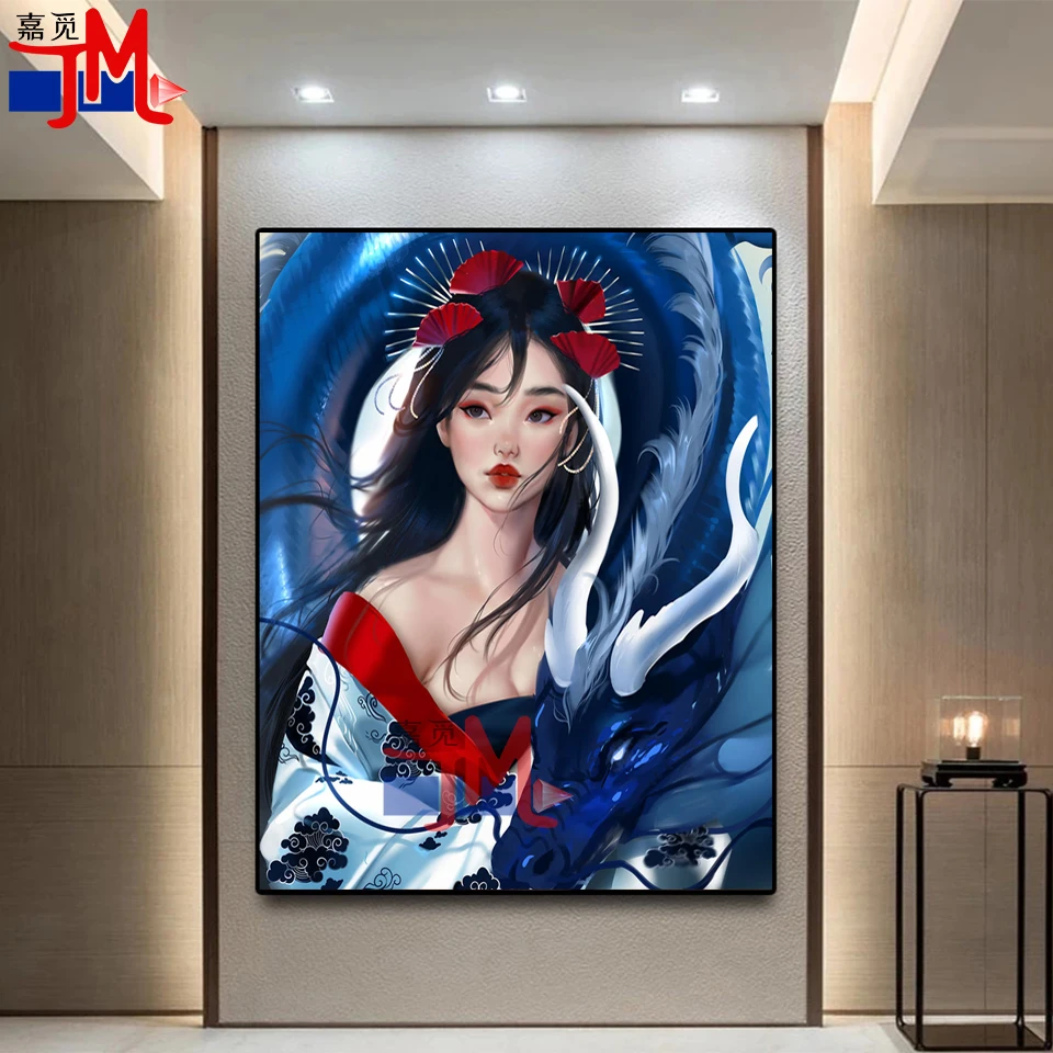 5D алмазная картина полностью квадратная японская гейша для женщин DIY Алмазная вышивка продажа Круглая дрель Аниме Картина с драконом подарок ручной работы