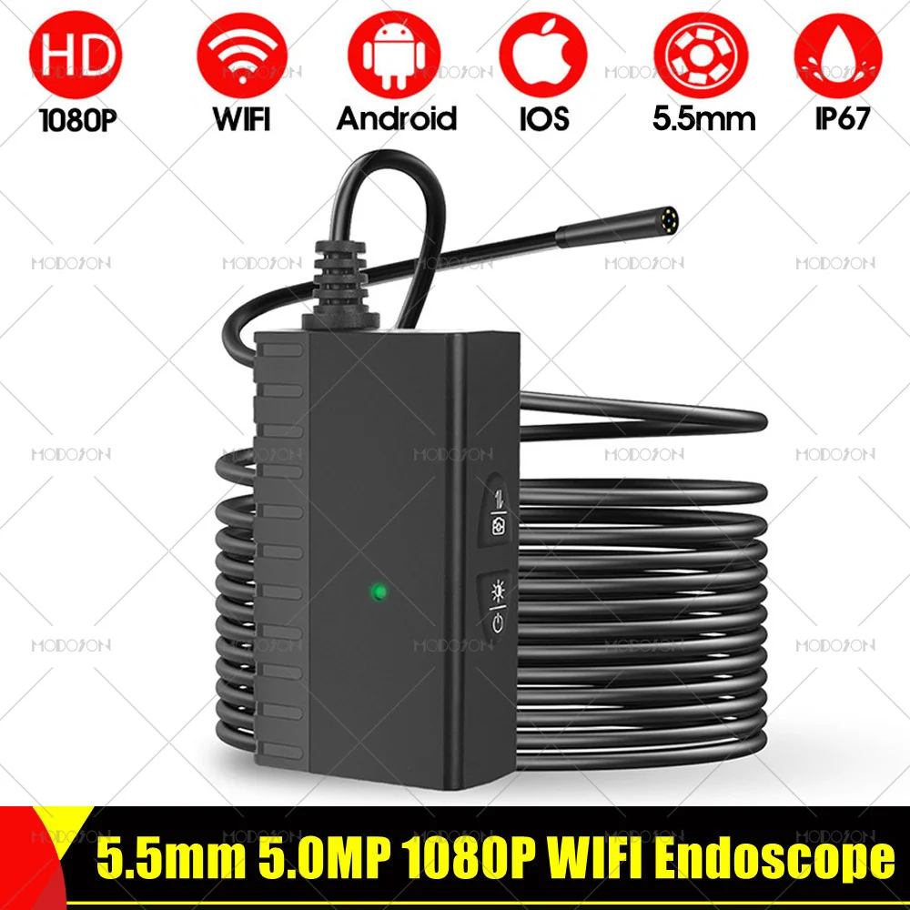 5,5 мм 5.0MP 1080P WIFI эндоскопа камера 2600mAh промышленный осмотр Видеоскоп Змея бороскоп для iOS iphone Android планшет