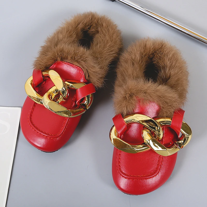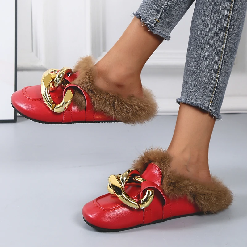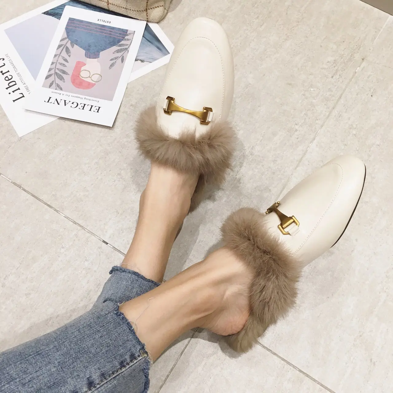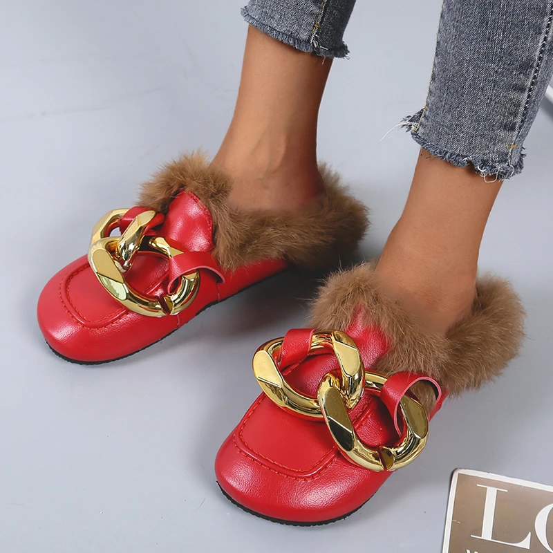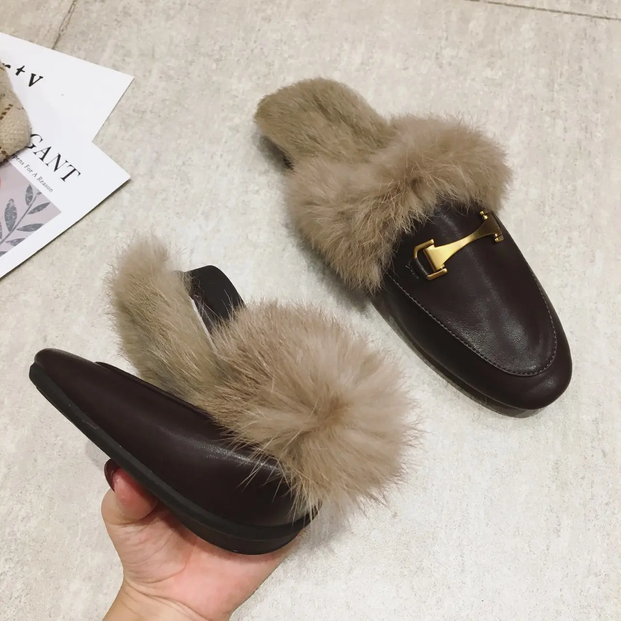 Женские туфли на натуральном меху LazySeal, повседневные Мокасины с металлической цепочкой, круглый носок, пушистые шлепанцы, пушистые шлепанцы, обувь для осени