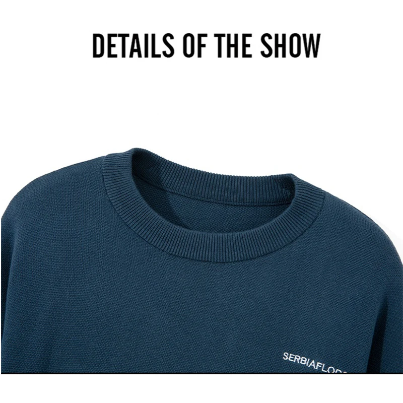Мужской трикотажный свитер с круглым вырезом, Повседневный хлопковы...