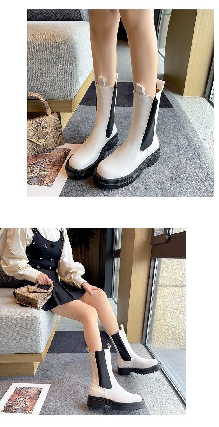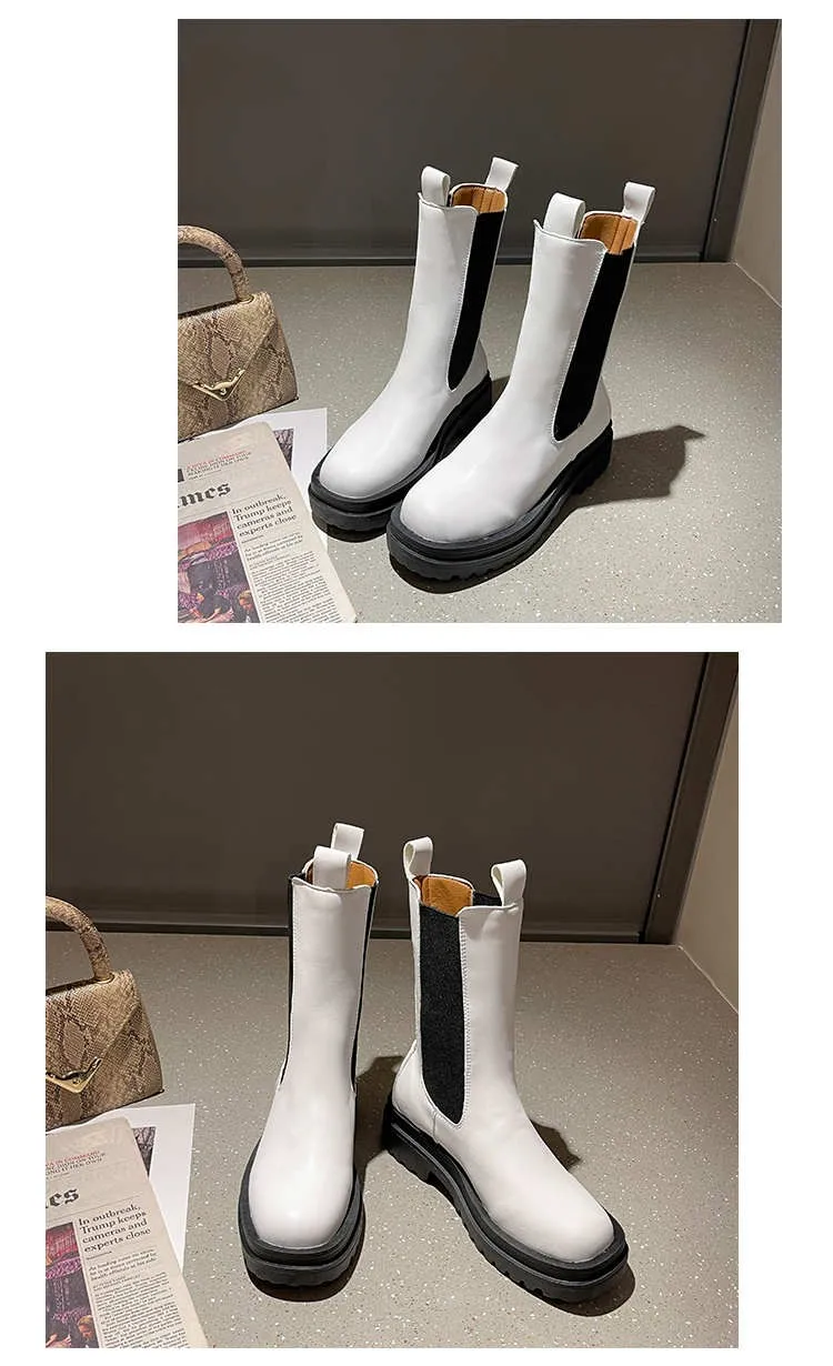 Женские сапоги Челси на толстой подошве, сапоги до колена из искусс...