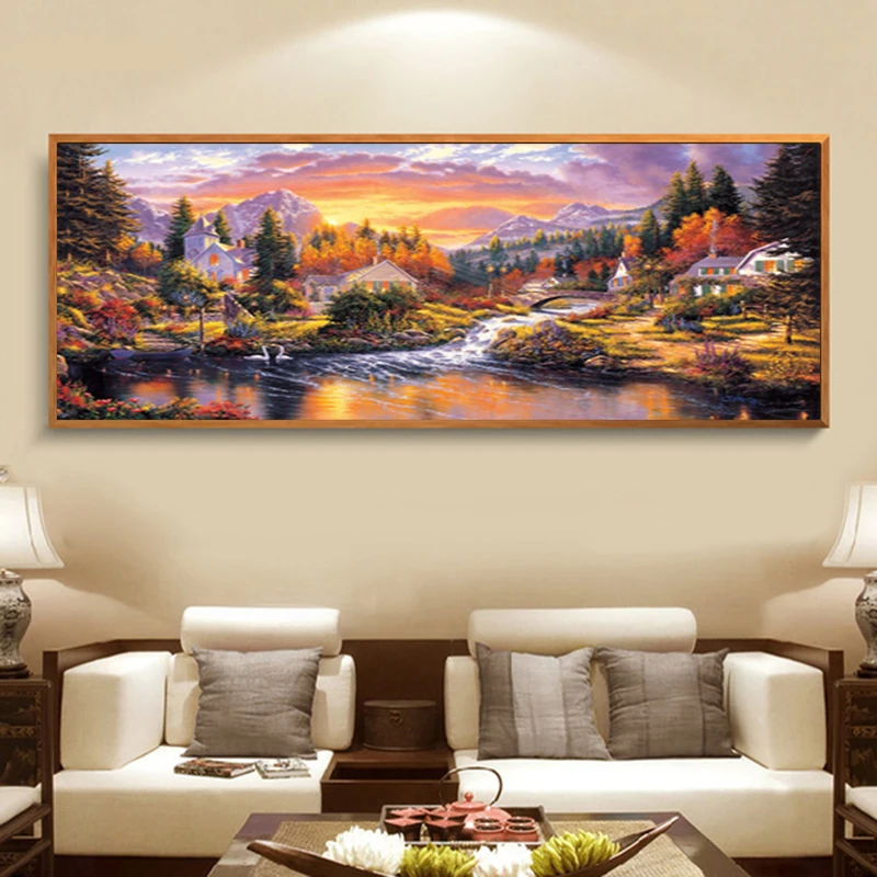 Пейзаж моста алмазная живопись, пейзаж, алмазная вышивка, коттедж, ...