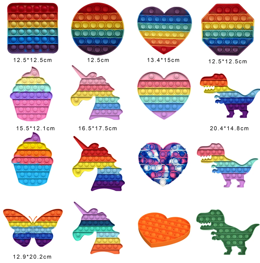 Антистрессовые Игрушки Pop, радужные игрушки-антистресс с пузырьками, сжимаемые игрушки с простым затемнением, антистрессовые игрушки для детей, взрослых и детей