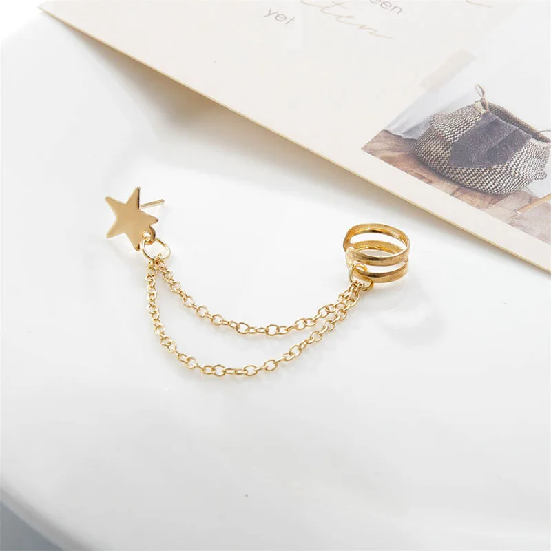 Женские длинные серьги-каффы, серебристые металлические серьги-гвоздики в форме звезды, сердца, геометрические серьги в стиле панк, ювелирные изделия, 1 шт.