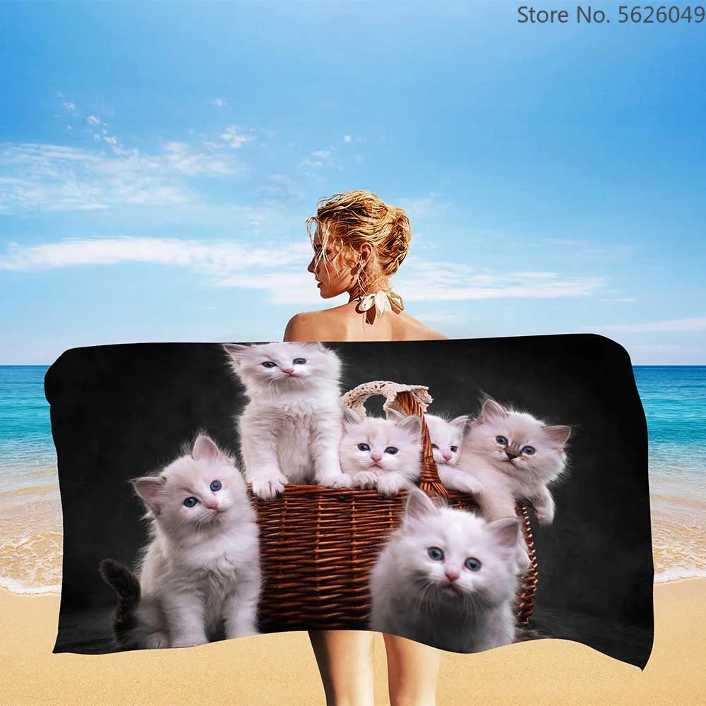 Пляжное полотенце с черным котенком, полотенце для мытья лица, банное полотенце в ванную комнату с милыми животными, кошками, рождественский подарок для детей, полотенце, быстросохнущее полотенце для рук