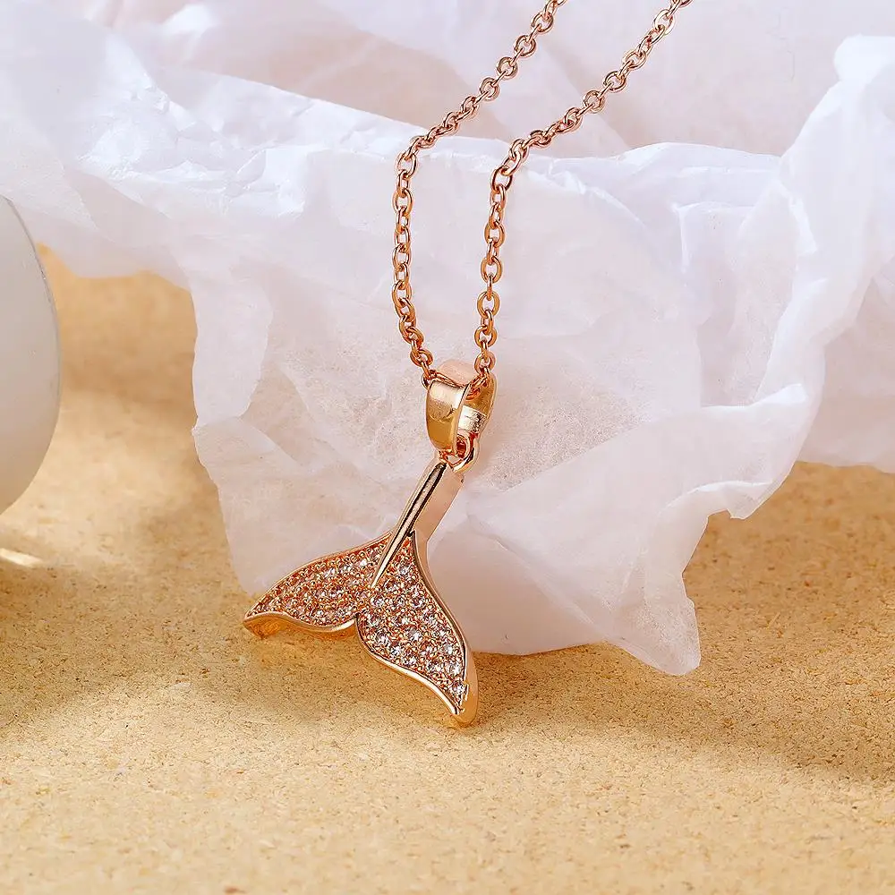 Ожерелье из розового золота с бриллиантами и Китом, праздничный под...