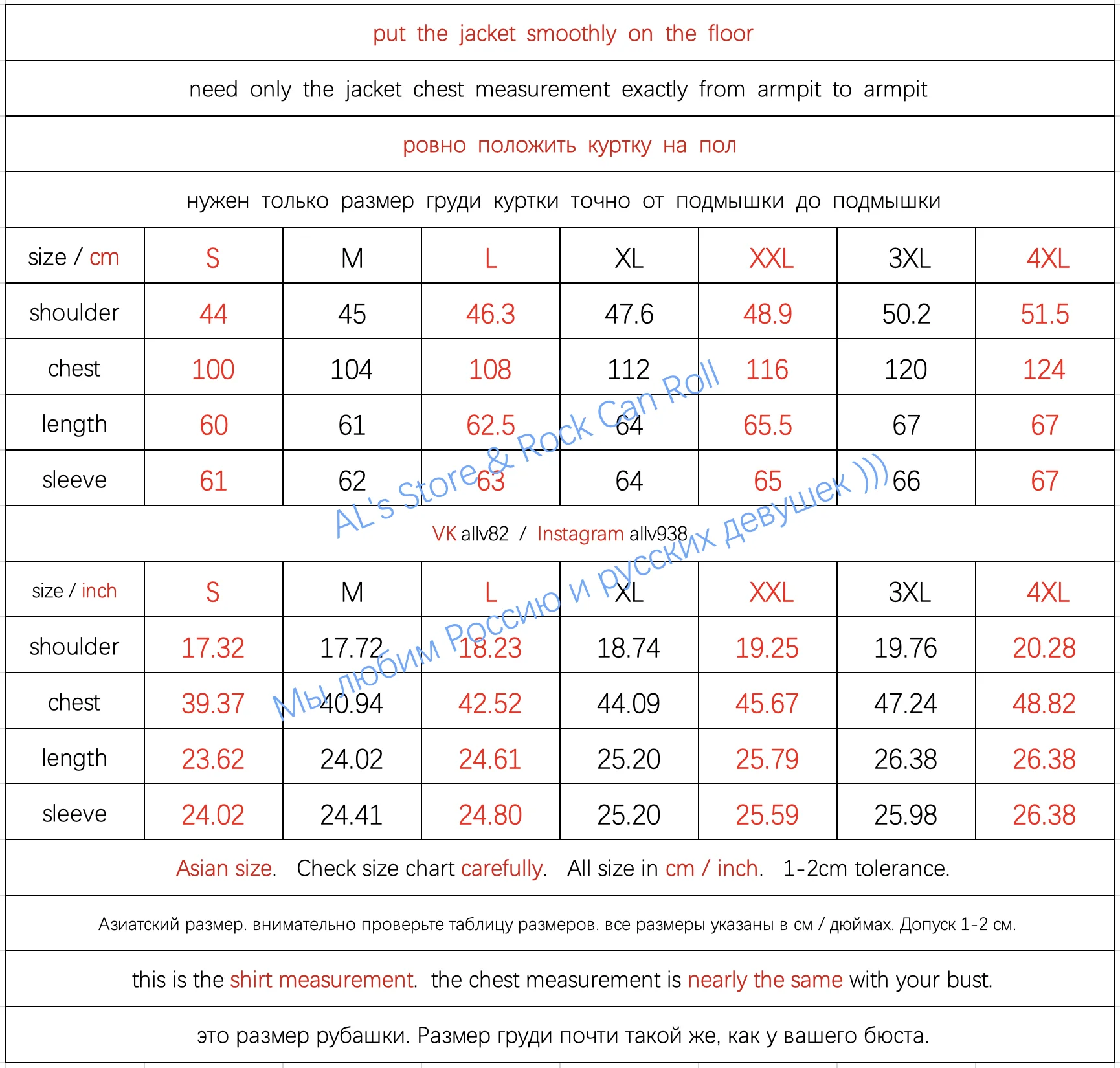 Пожалуйста, измерьте вашу куртку, как показано ниже: