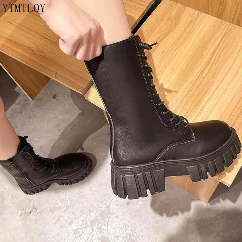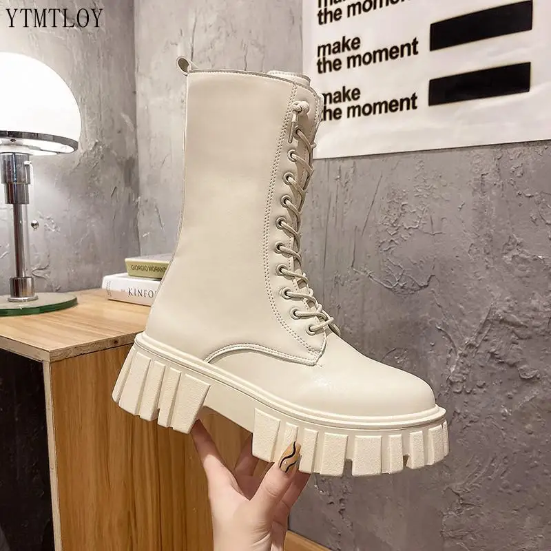 Женские белые ботинки, осень 2022, модная черная кожаная обувь на платформе в готическом стиле, в стиле панк, Боевая обувь Ytmtloy с круглым носком, женские сексуальные ботинки