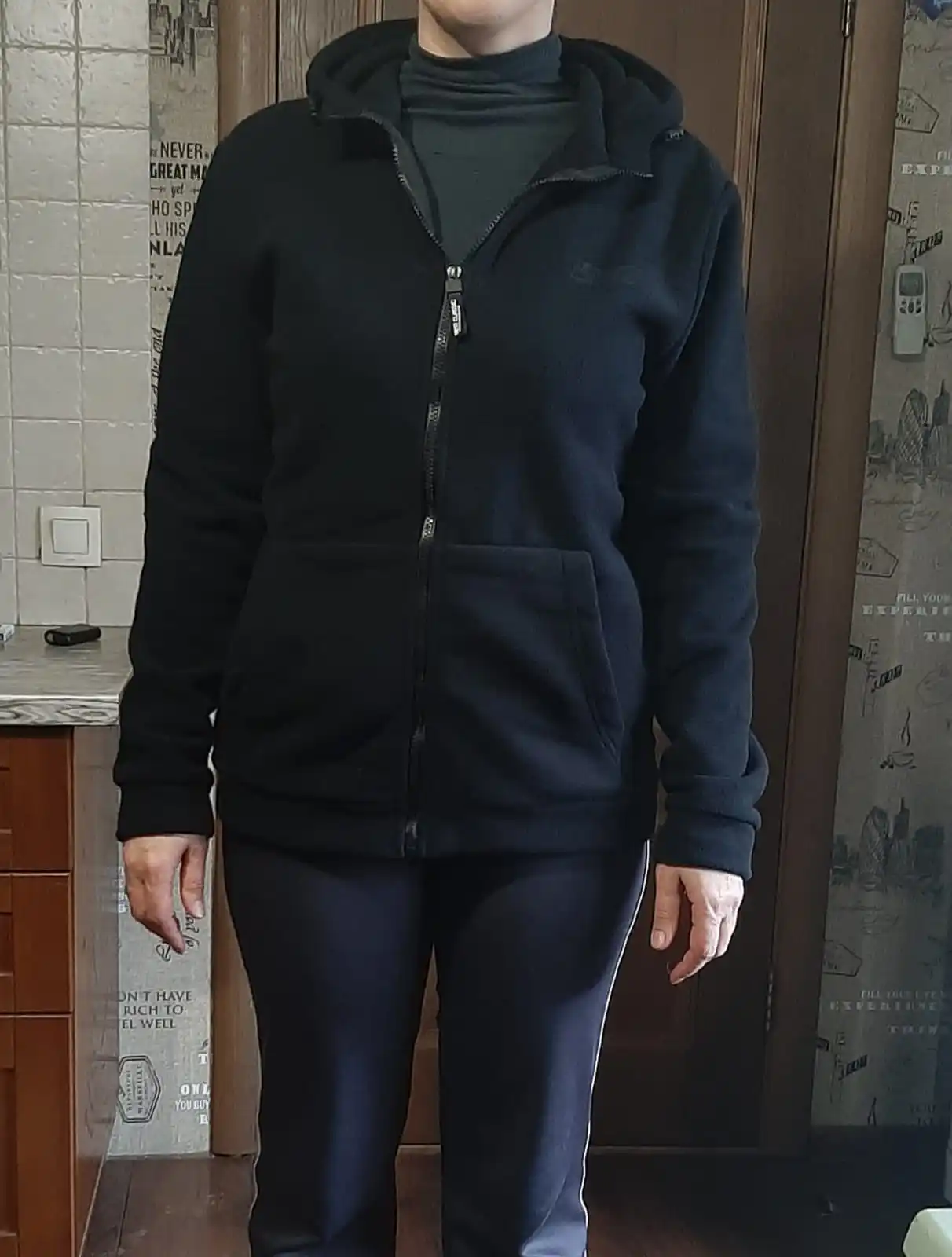 Лёгкая флисовая толстовка. При моих 187 и 135 веса сидит свободно, рукава по длине отлично. Капюшон на 58 размера голову сидит свободно с запасом. Продавец общительный, уточнялись с ним по размеру и цвету перед отправкой.