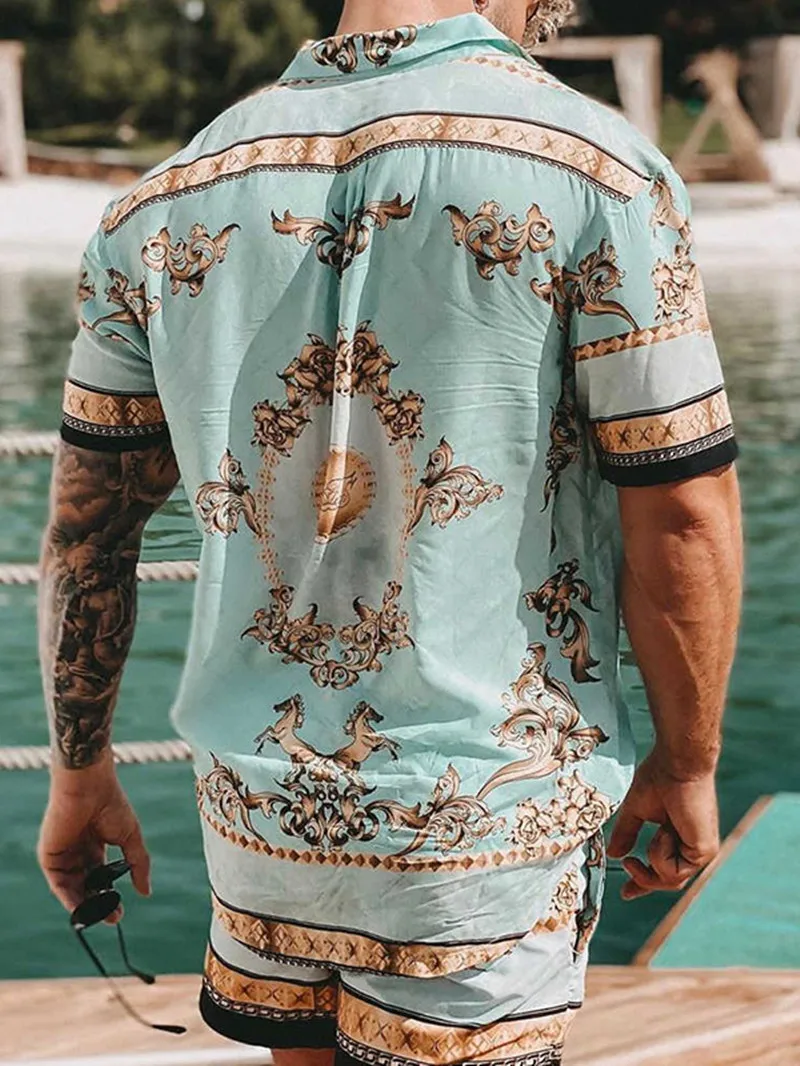 Мужской комплект из 2 предметов, гавайская рубашка с коротким рукавом и пляжные шорты, повседневный костюм с принтом, лето 2021
