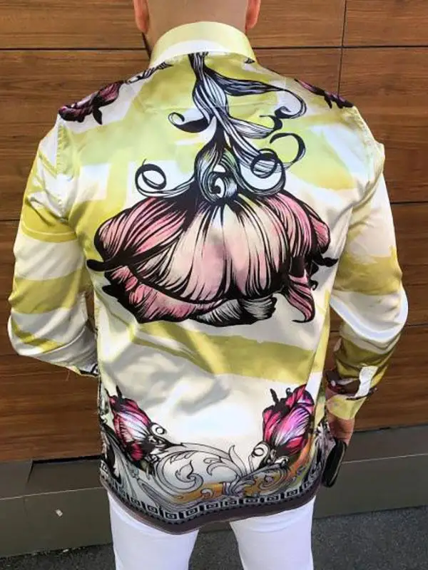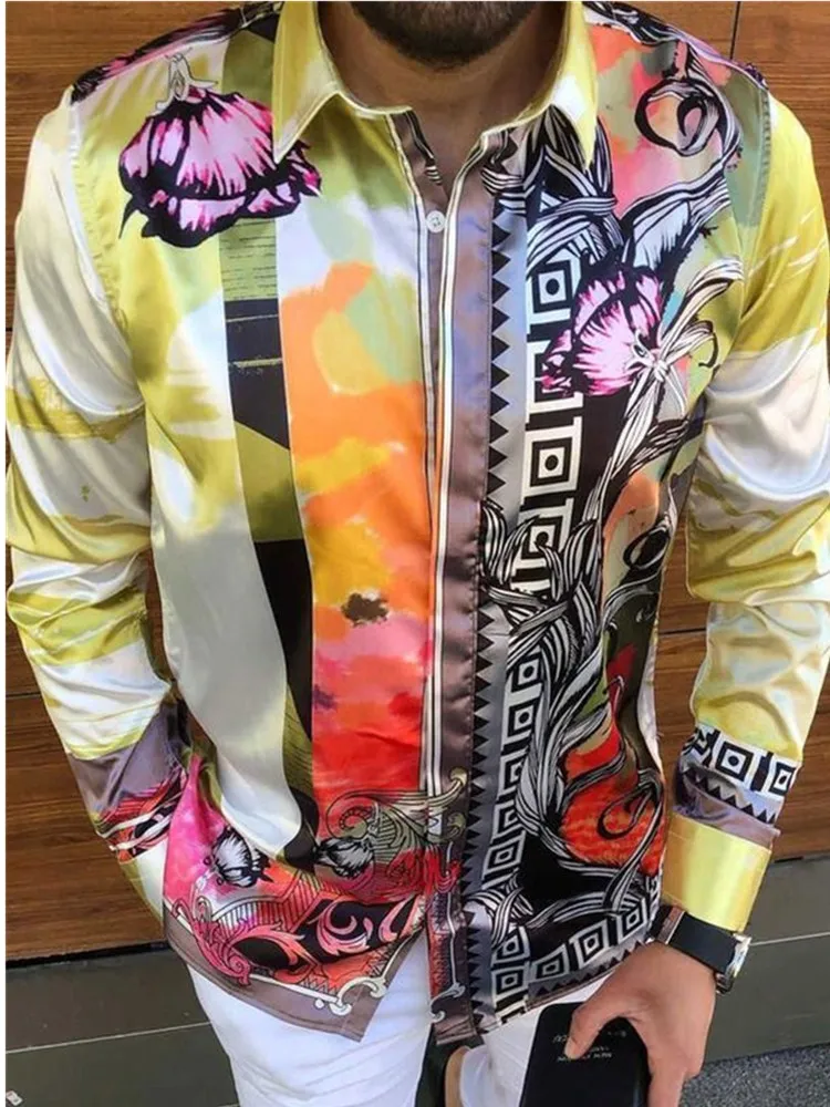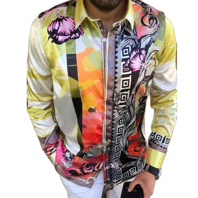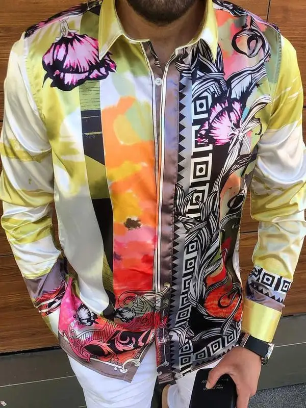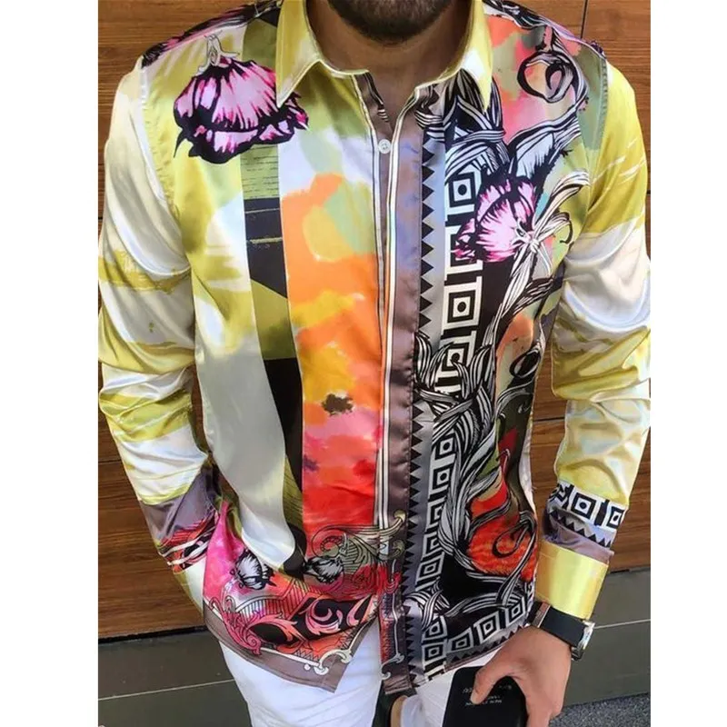 Рубашка мужская с длинным рукавом, отложным воротником и принтом, на пуговицах