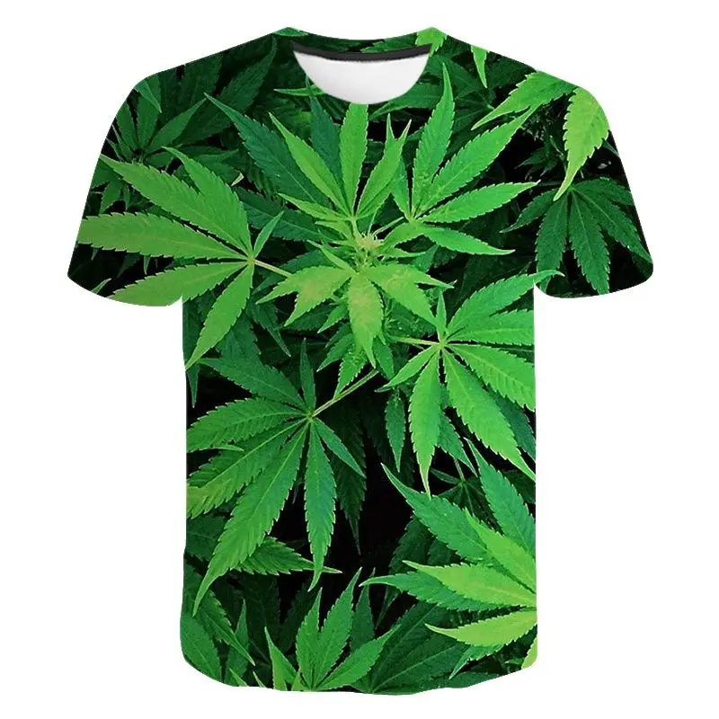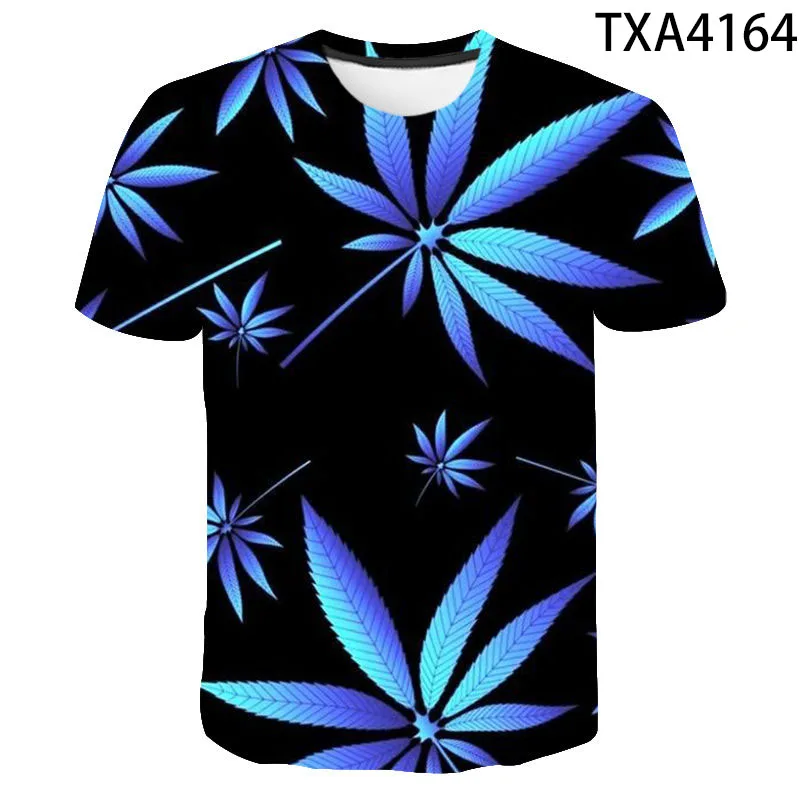 Футболка Летняя с 3D-принтом листьев марихуаны, модная уличная одежда с коротким рукавом для мальчиков и девочек, крутая с графическим принтом для мужчин и женщин