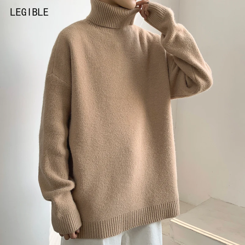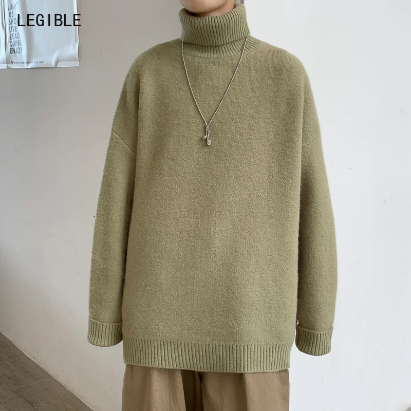 Разборчивый Зимний толстый теплый свитер с воротником под горло для мужчин, фирменный Однотонный мужской свитер, Свободный вязаный пуловер для мужчин
