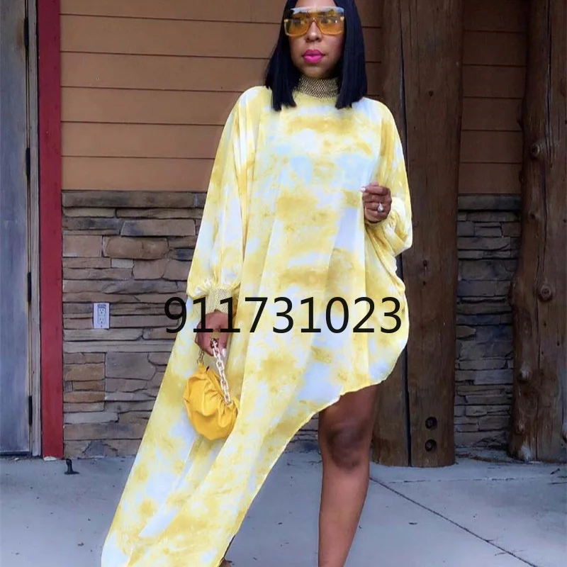 2021New Fashion нерегулярные камуфляжные повседневные платья с высоким разрезом по бокам, женские лоскутные платья с блестками и рукавами «летучая мышь», свободные вечерние длинные платья