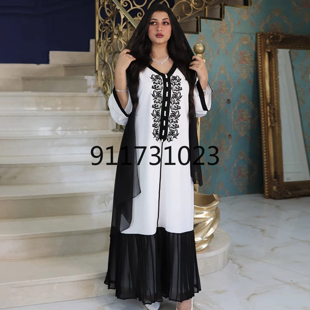 Черный, белый Abaya Дубай, Турция мусульманское хиджаб платье 2021 вечерние платья богемный кафтан с Длинным Рукавом Кимоно мусульманская одежда халат