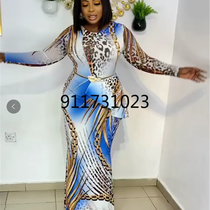 Африканские платья для женщин 2021 весна и осень Африканские женщины с длинным рукавом o-образным вырезом полиэстер длинное платье африканская одежда